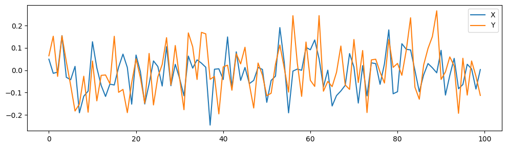 X += [alpha * X[-1] + beta * Y[-1] + np.random.normal(0, X_std)]