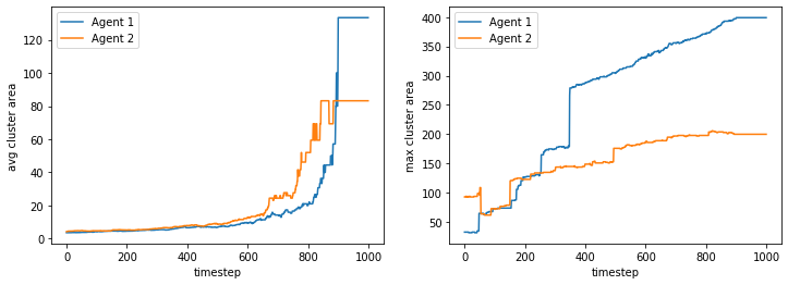 We start by allowing the agents to cluster below. We restrict the agent’s movement to a 5x5 grid kernel around it.